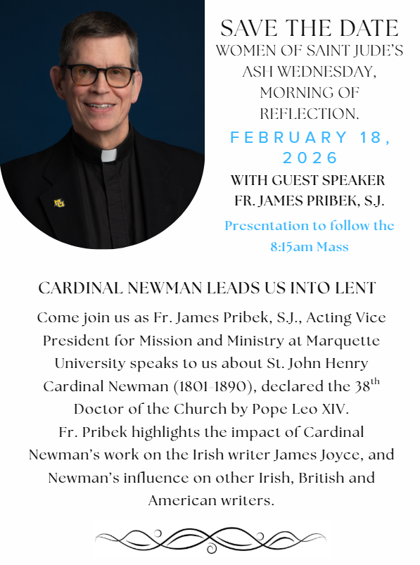 The Women of St. Jude are hosting their annual Ash Wednesday Morning of Reflection, February 18th, 2026.